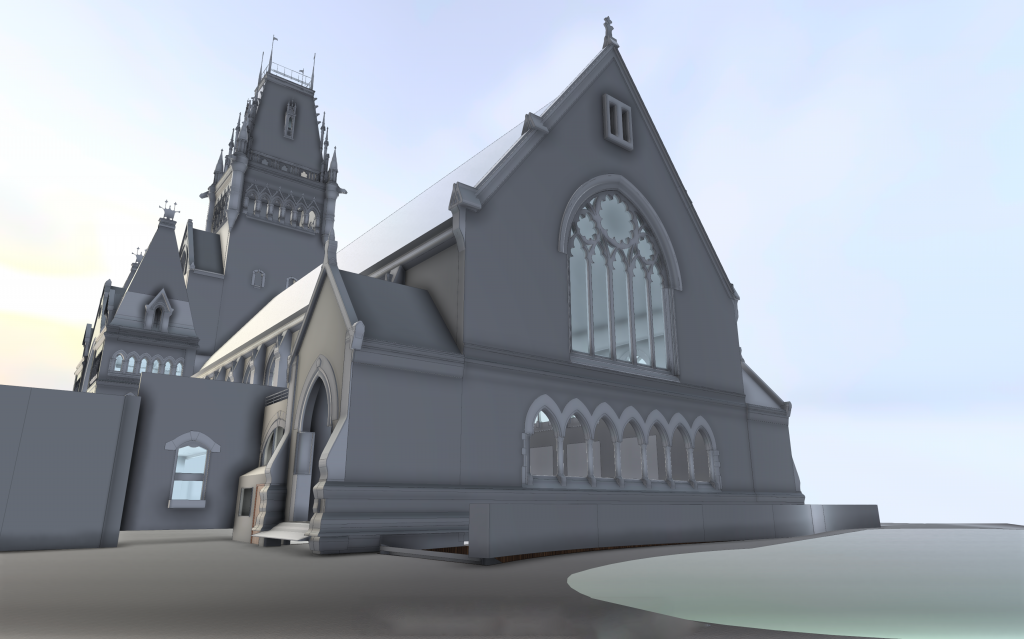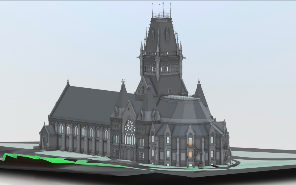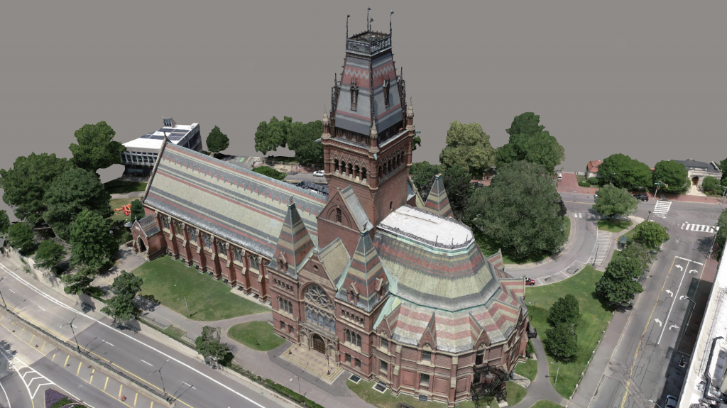 This data replaced the handheld DSLR imagery. The success of the aerial capture enabled us to further leverage the aerial capture by developing a full BIM model of the Hall. We worked closely with structural engineering firm LeMessurier to develop a coordinated model. We also delivered renderings based on the Revit model.